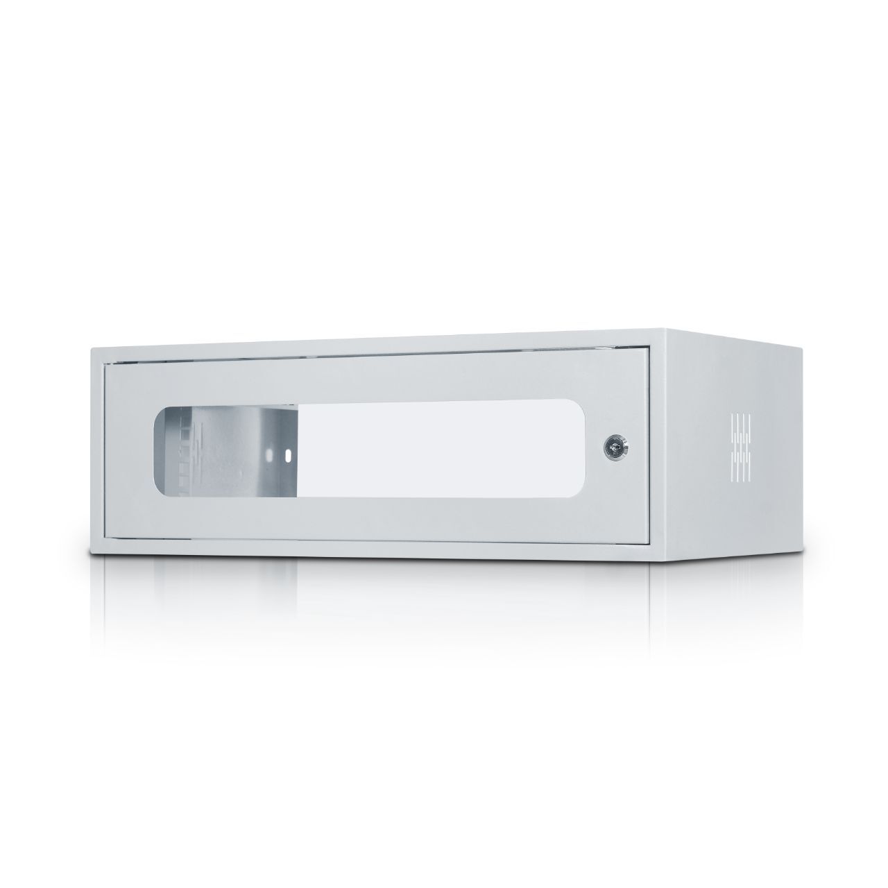 These cabinets provide install 19″ patch panel / Power Bars / Cable management / Etc… . Mount the cabinet horizontally on any flat surface.